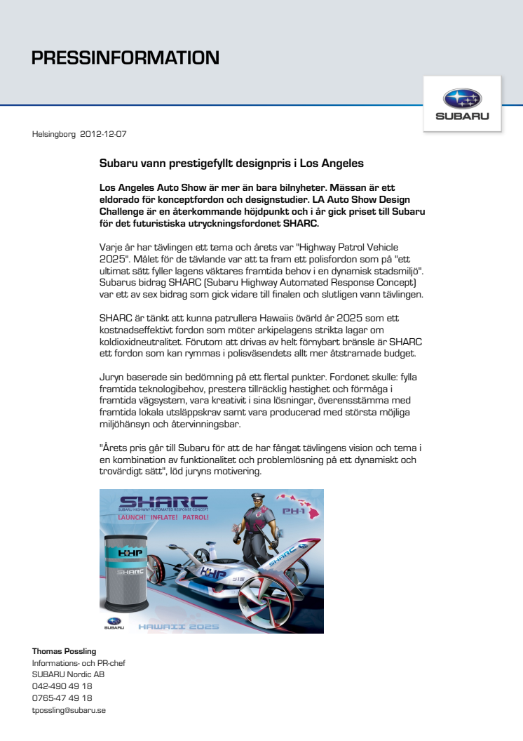Designpris till Subaru