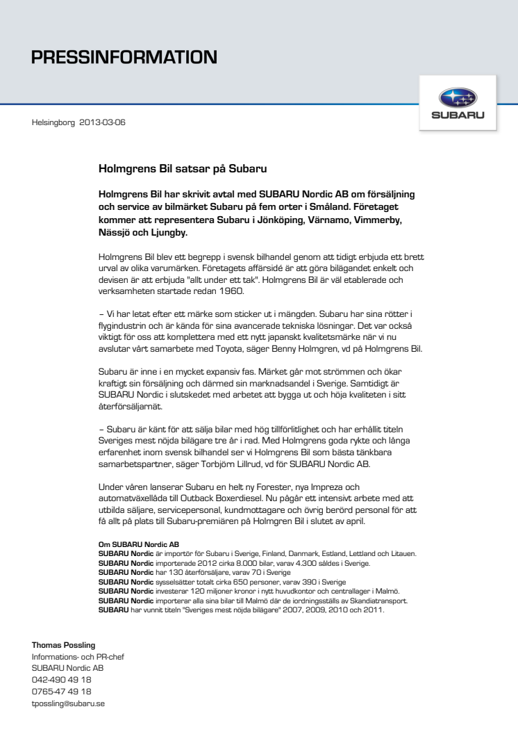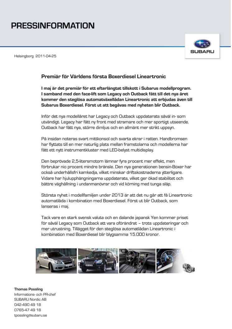 Premiär för Världens första Boxerdiesel med Lineartronic automatväxellåda