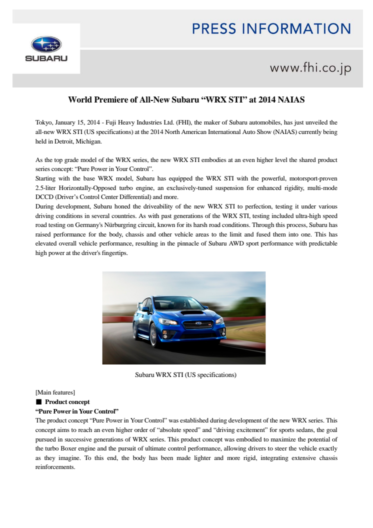 Världspremiär för nya Subaru WRX STI i Detroit